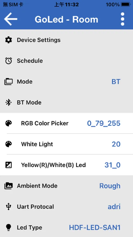 The APP provide fast remote control for GoLed. For easy use to switch mode or setting. GoLed support PWM-Led, PCH-Led, 2812-Led and DMX512 light. Support Auto-Ambient light , BT Control light and USB to Uart Ambient light mode. Provides 5 sets of time alarms that can be automatically turned on and off in unattended mode.