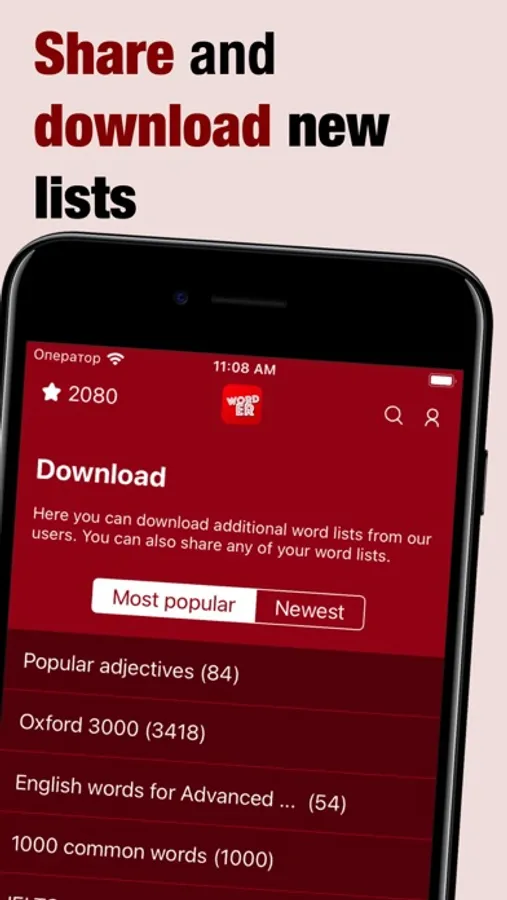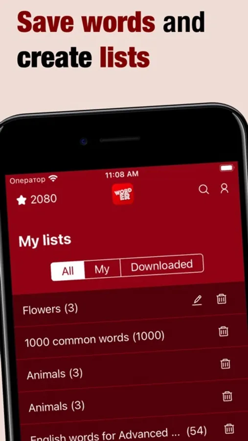 Users can save words in order to recap them afterward. We also provide ready word lists which users can download and use for free.