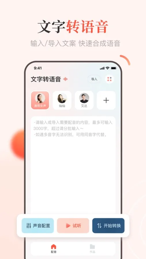 [Text-to-speech]: Input/import text content, one-click voice synthesis