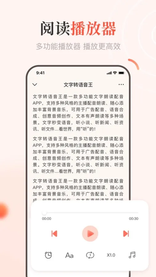Text-to-Speech King is a multi-functional text-to-speech dubbing app that supports various styles of anchor dubbing and reading, and can add rich background music as you like. It can be used in various scenarios such as advertising dubbing, speech synthesis, creative audio creation, and text reading aloud. Text changes into voice in seconds, listen to novels, news, information, files... See the world, use "listen"!