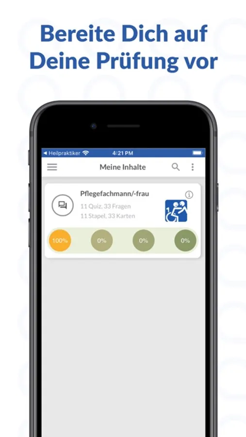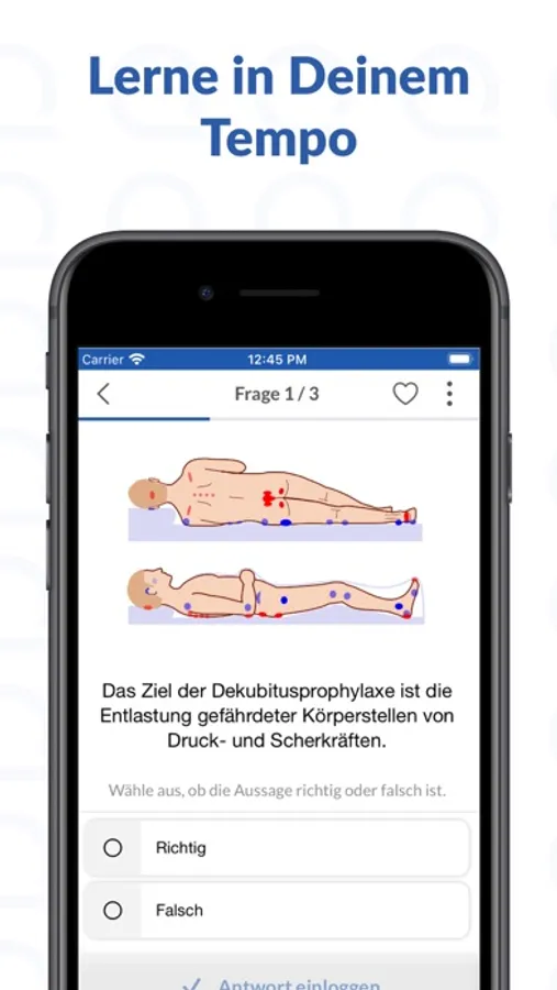 Bereite Dich optimal auf Deine Prüfungen in der Pflege vor! In dieser Lern-App findest Du grundlegende Prüfungs- und Lerninhalte für alle angehenden Pflegefachfrauen und Pflegefachmänner zu verschiedenen Bereichen der generalisierten Pflegeausbildung.