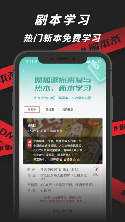 剧狐DM端产品,用于兼职DM通过剧狐为剧本杀门店提供兼职到店主持服务。