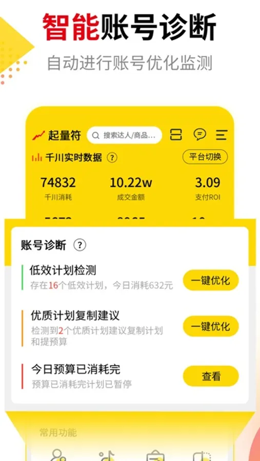 -智能账号诊断,实时投放优化建议;