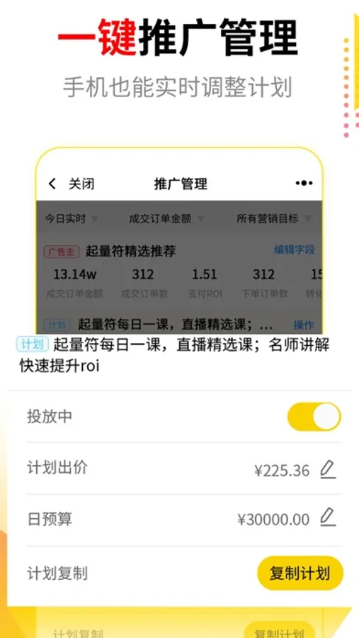 起量符支持授权巨量千川/巨量引擎账号,手机一键授权轻松看数据管理计划~