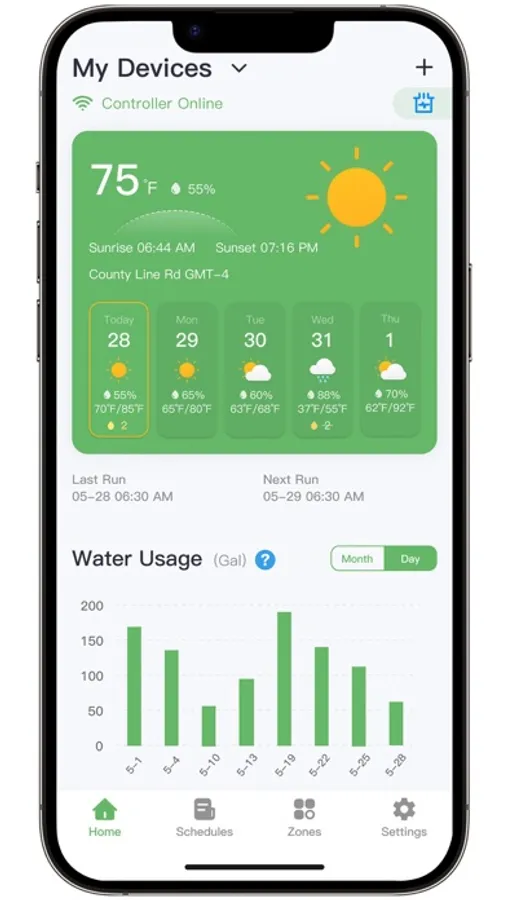 ImoLaza is leading the new irrigation revolution with its cutting-edge EVAPOTRANSPIRATION irrigation technology, which transforms traditional irrigation methods with a unique Intelligent Watering Decision Model. This allows you to effortlessly and flexibly create watering schedules to fulfill any irrigation task while ensuring no watering occurs during rain through accurate weather data, ultimately increasing water-saving efficiency by up to 60%!