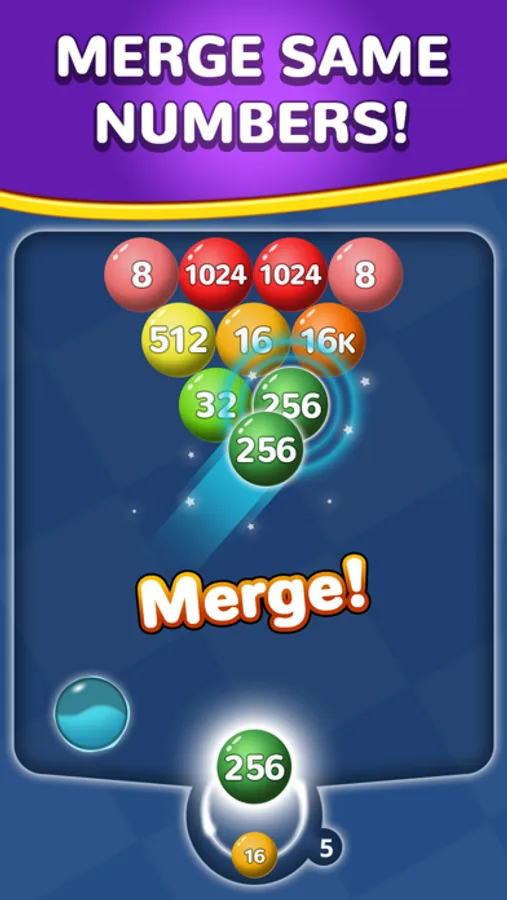 Simply slide your fingers, merge number bubbles. 1024, 2048, 4096, 8K, 16K... Shoot bubbles and merge. Challenge high scores to relax and show off.