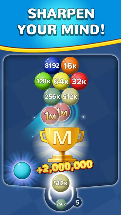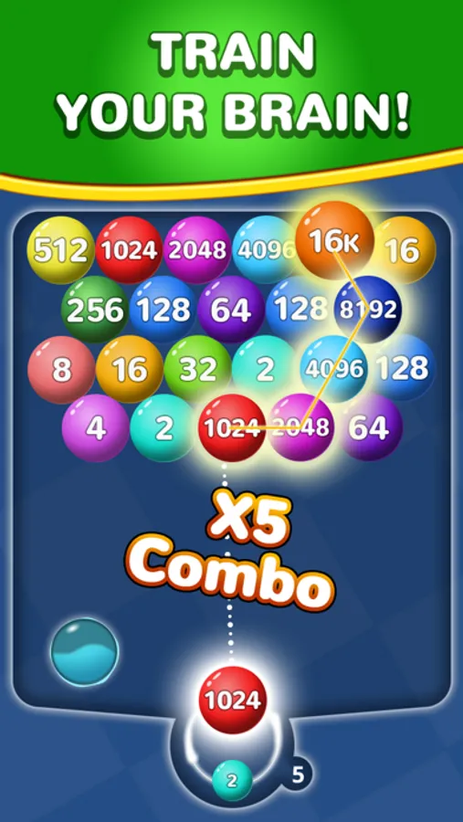 Shoot bubbles and merge to 2048 and even larger numbers, winning high scores!