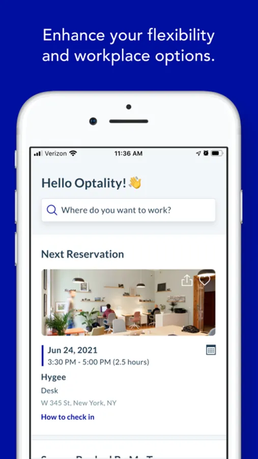Optality is an intuitive mobile app where users can search and book workspaces anywhere, anytime.