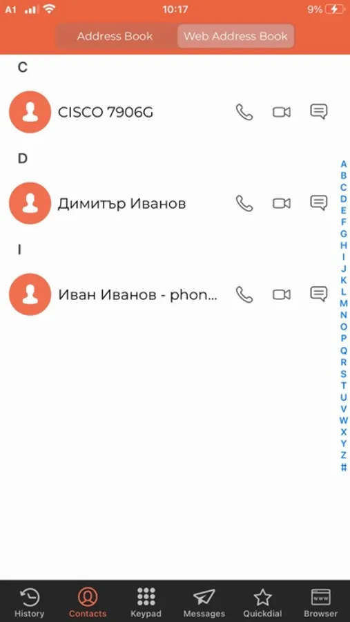• Уеб адресен указател, който ви позволява да се свържете с всеки контакт от вашата фирмена група, без значение дали имате номера му във вашия телефонен указател.
