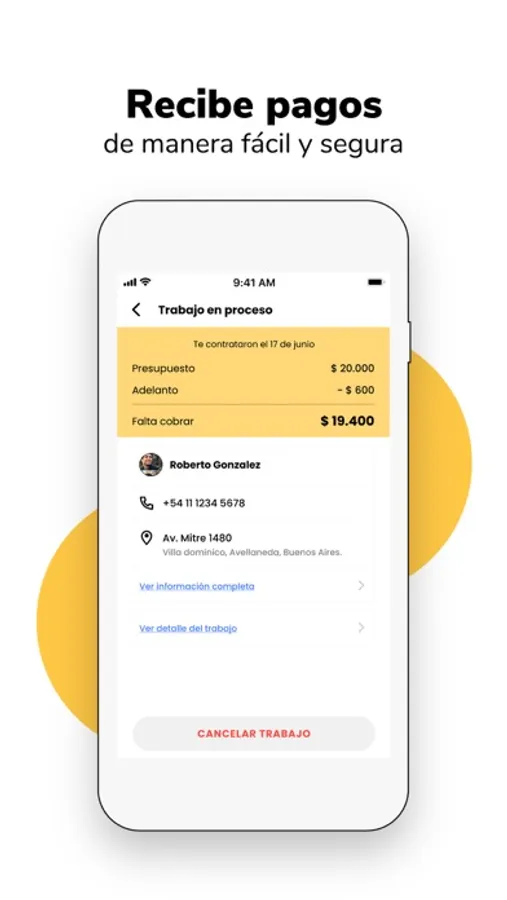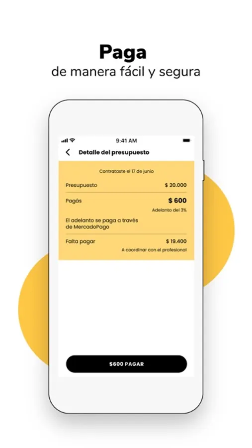3. Paga: Acepta el presupuesto y realiza un adelanto del servicio que contrataste de forma rápida y segura.