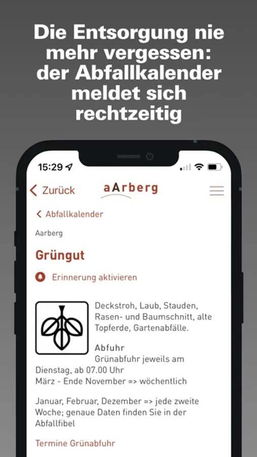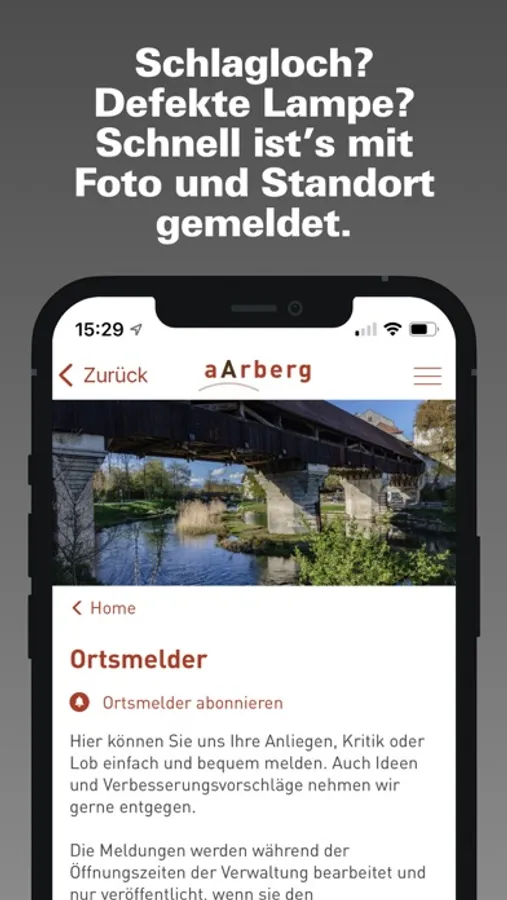 Mit der App der Gemeinde Aarberg bleiben Sie mobil und verpassen keine wichtige Information: Sie bietet Ihnen die aktuellsten Informationen zum politischen Geschehen und zum Leben und Verweilen in Aarberg, sowie einen "Stadtmelder" und viele wichtige Links rund um die Gemeinde.
