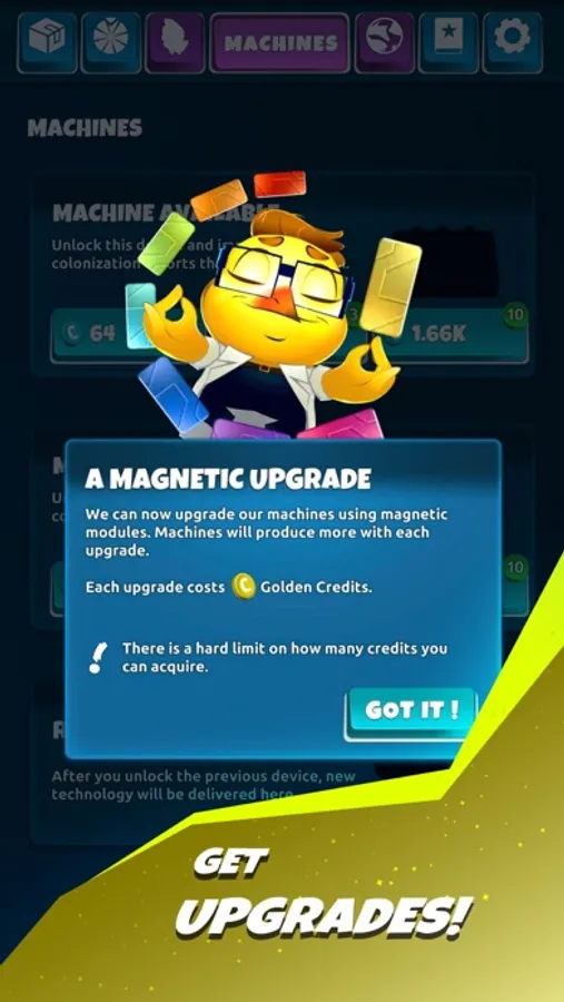 - Unlock your Machines: acquire credits and unlock different type of machines