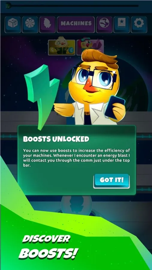 - Discover the Boosts: increase the speed of your machines and decide when is the right time for a boost