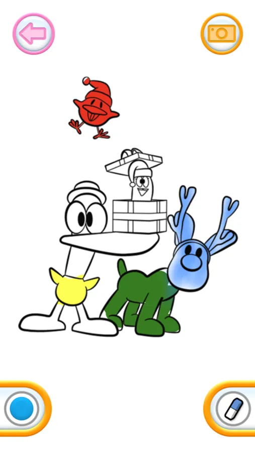 A Christmas Coloring Game could not be missing from this app for children. The little ones will enjoy coloring cute Christmas templates of the characters. And, when they finish their work of art they can take a photo of it to save it in the gallery and share it with their loved ones as a Christmas greeting.
