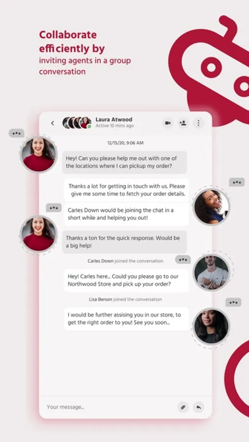 Invite other agents to your chat for group conversations and resolve issues quickly.
