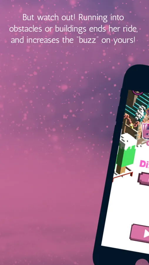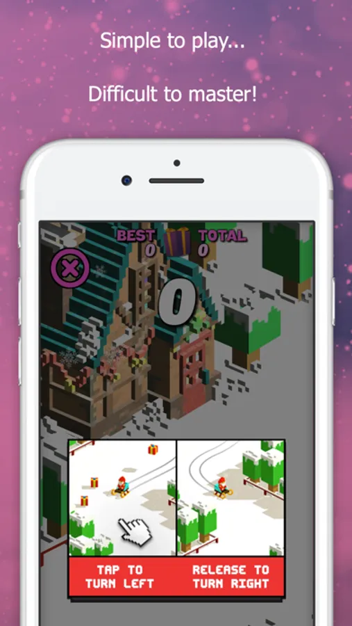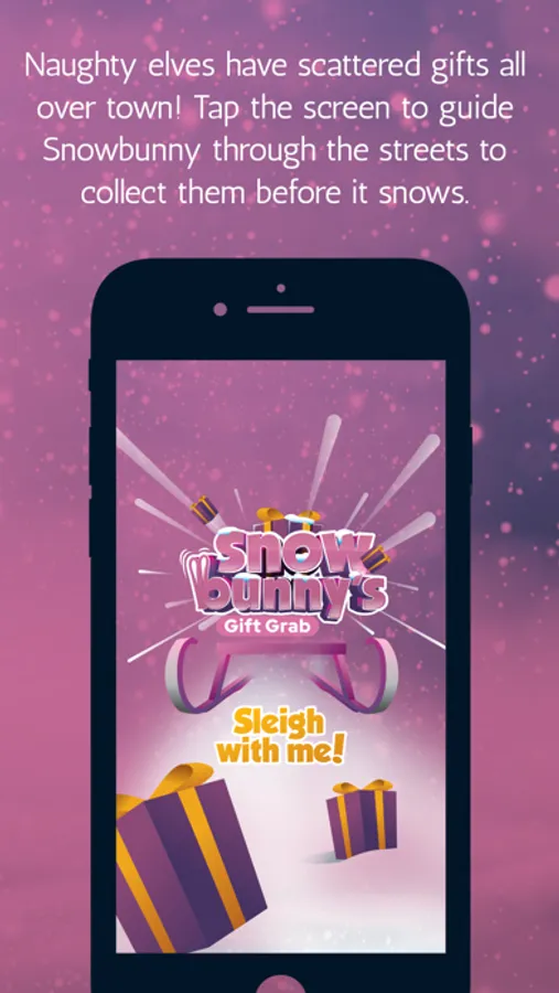 Naughty elves have scattered gifts all over town! Tap the screen to guide Snowbunny through the streets to collect them before it snows. But watch out! Running into obstacles or buildings ends her ride, and increases the “buzz” on yours!