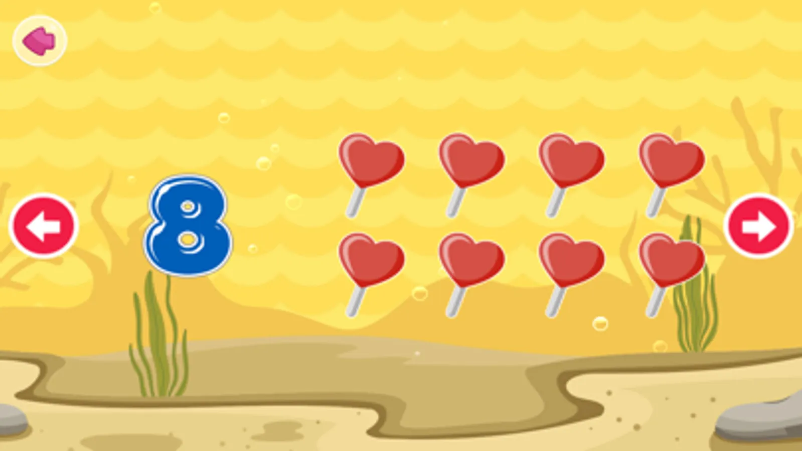 Numbers: Let your Kids learn Numbers with this new underwater adventure game, where kids explore 1 To 20 Number System, counting numbers, tracing, identify the number, match memory, pop the bubble, and smaller and bigger numbers.