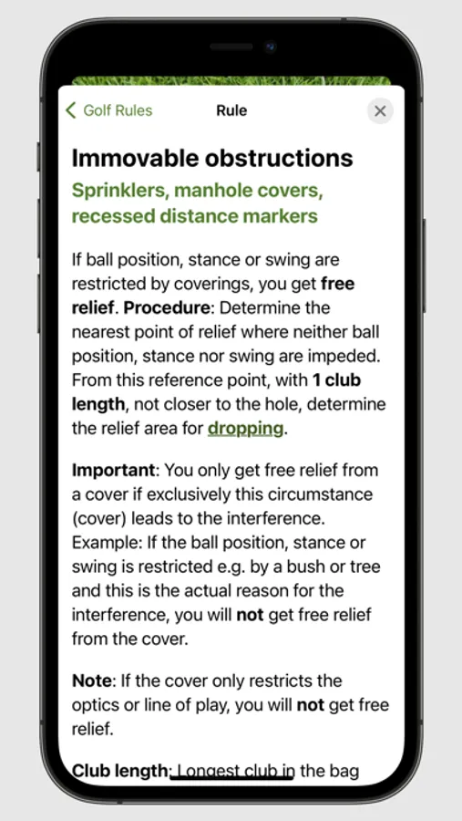 - Fast results: Get the relevant golf rules within seconds to keep the game going smoothly.