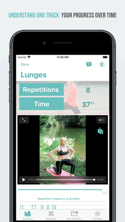 - Instant feedback to perfect your technique, including frequency, repetition counts, and more