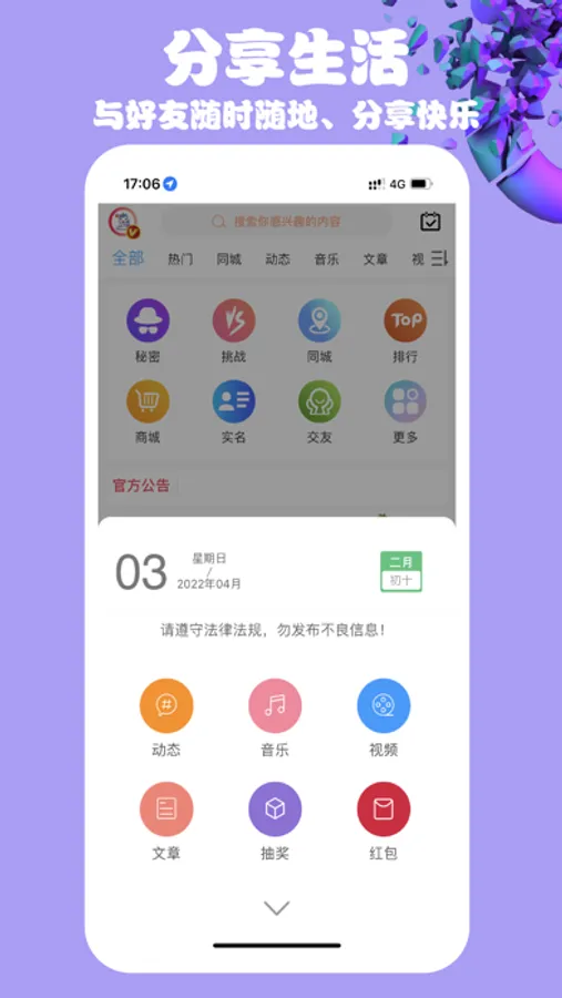 【动态内容】分享真实社交生活,遇见温暖看友,让兴趣更有趣。