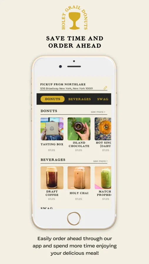 "The Holey Grail app is a convent way to order ahead and earn rewards! Rewards are built in so you'll earn ""Grails"" on every purchase towards free drink pairings and donuts. Skip the line through app ordering and claim free birthday donuts. We'll also make sure you're the first to know about our exclusive menu items and ""micro-lot"" flavors.