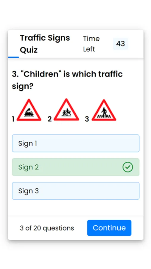 Driving means being free. This app has been designed from the ground up so that Swiss traffic rules can be internalized well and quickly. The clearly structured theory part is supplemented by graphics and explains the traffic rules vividly. The learning program is suitable for a refresher of the theory as well as for new learners of the traffic rules. You can test your knowledge of traffic signs in the quiz, where you will be asked 20 questions about traffic signs per quiz.