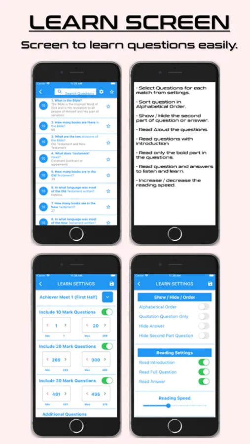 Learn Screen: The color of the question is changed when user tap on the question to read aloud. This will help the user to know which question is reading by the app.