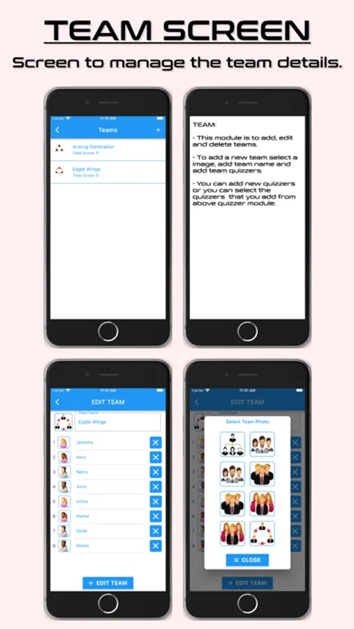 The Score Keeper tab can be used for score keeper during quiz meets. In quizzes tab you can add all the quizzes in a team. In team tab you can add the home team and the opponent team.