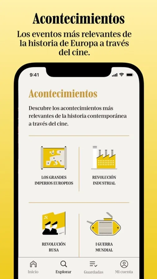 - Acontecimientos: Los eventos más relevantes de la historia contemporánea de Europa a través del cine.