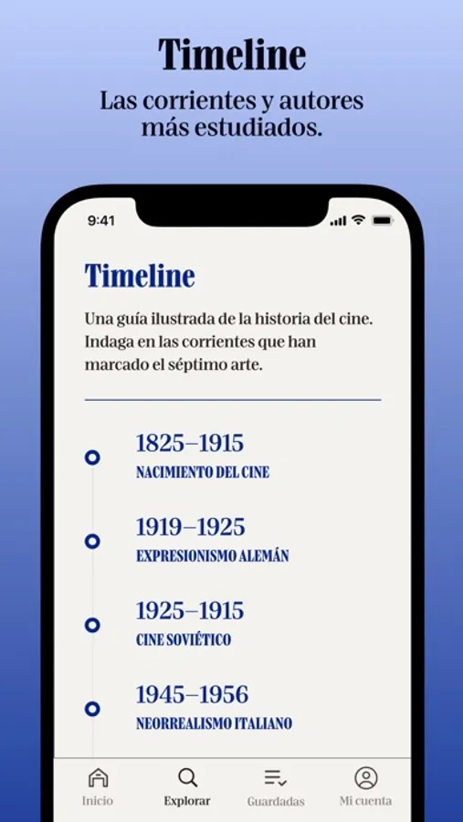 - Timeline: Una guía ilustrada de la historia del cine a través de sus corrientes más relevantes.