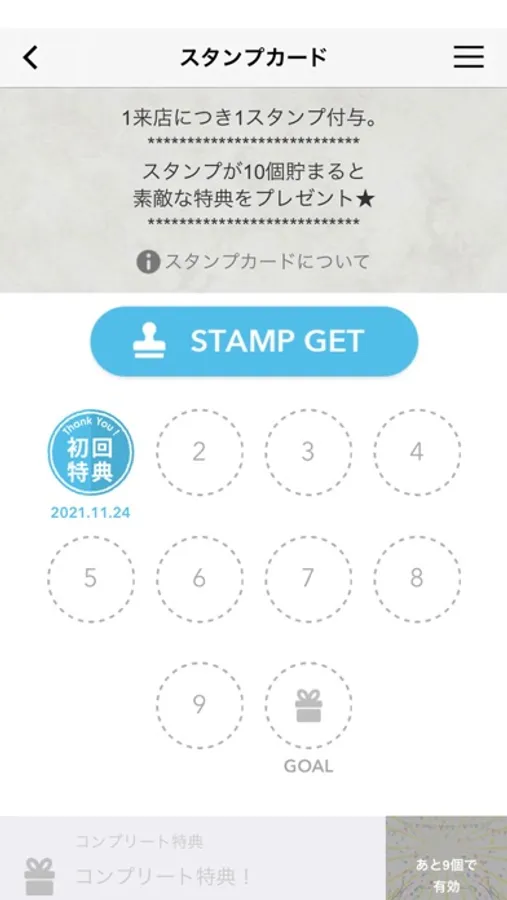 ご来店でスタンププレゼントいたします。