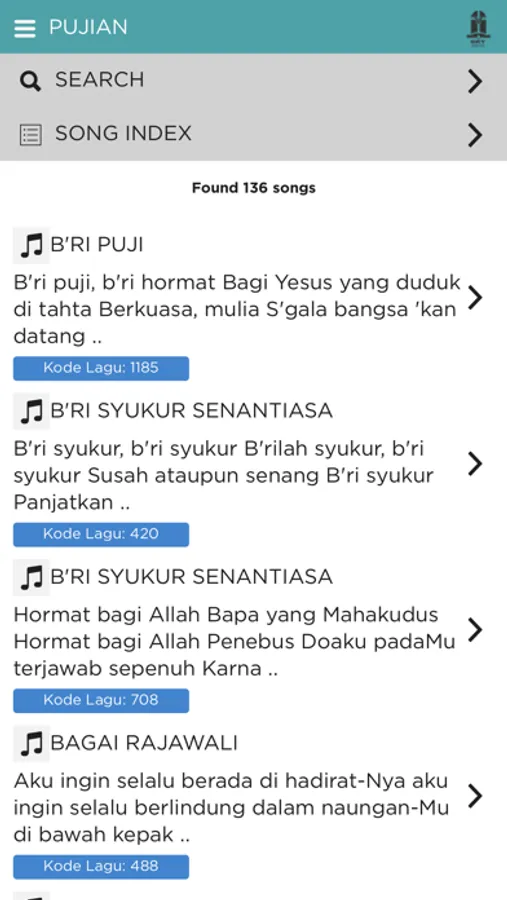 - Song lyric search to make user / church congregation easy to find worship song lyric quickly.