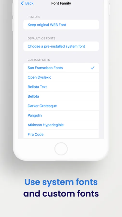 With Custom Text Font's Pro Features, enhance your browsing and enrich lives. Share inclusive web browsing with your family through Family Sharing – one purchase extends accessibility to all devices.