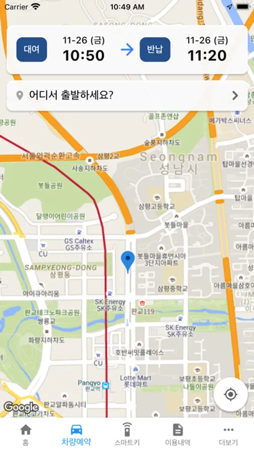 - 위치: 차량을 빌릴 수 있는 차고지 확인
