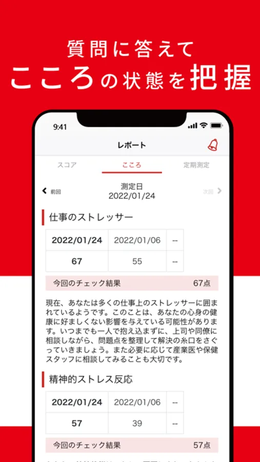 いくつかの質問に答えることで、自身のこころの状態を把握し、アドバイスを受けることができます。