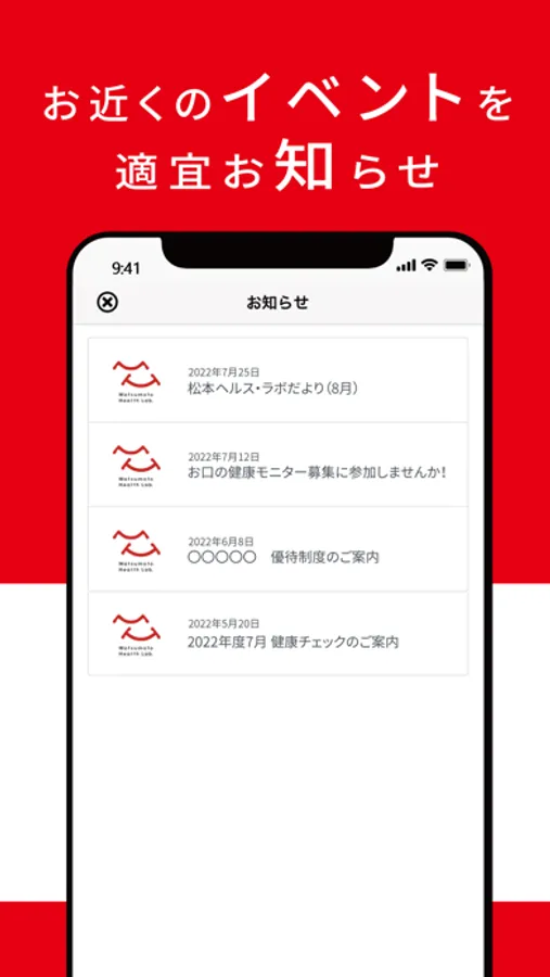 お住まいの近くでの健康イベントや、ラボ会員限定の特典など、様々な情報をお知らせします。