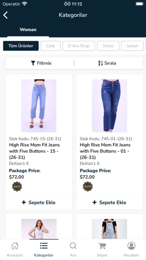 * Ürün kategorilerinde filtreleme yapabilirsiniz.