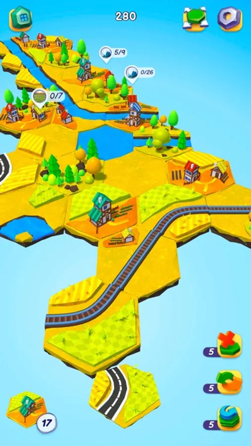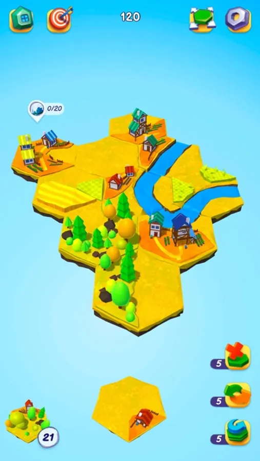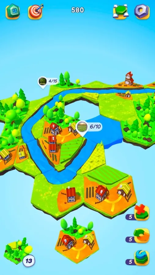 Complete tasks to get more tiles and continue expanding your landscape. The game will end when the stack of tiles is completely used up. You will be able to benefit from the results of your city building talent.