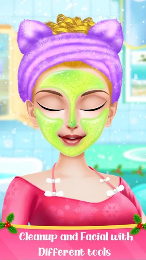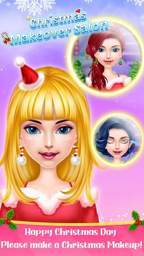 Become a princess of Christmas! Dress up the girl and apply beautiful makeup on the Christmas barbie! Pick the best dress, blouse, choose hairstyle and make-up. Select lipstick, skin color, choose eye color, lashes and mascara. Be a true Christmas princess in the beauty salon!