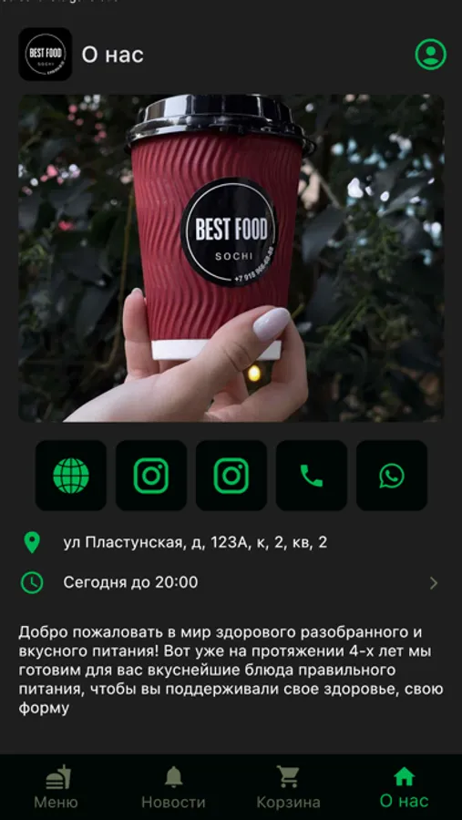 Приложение для удобного заказа наших блюд здорового питания, а также рационов, рассчитанных по калорийности