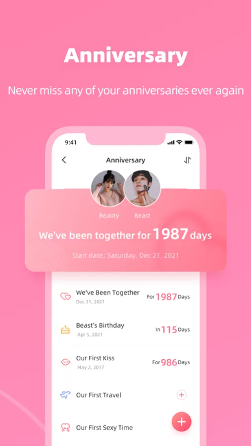 - Anniversary: never miss any of your anniversaries ever again!