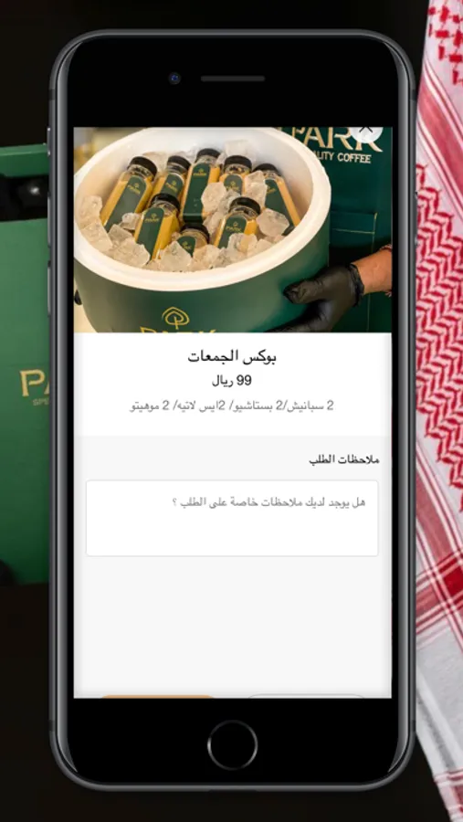يمكنك الطلب بشكل مباشر من تطبيق مقهى بارك
