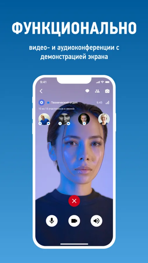 - Функционально. Видео и аудио конференции c демонстрацией экрана;