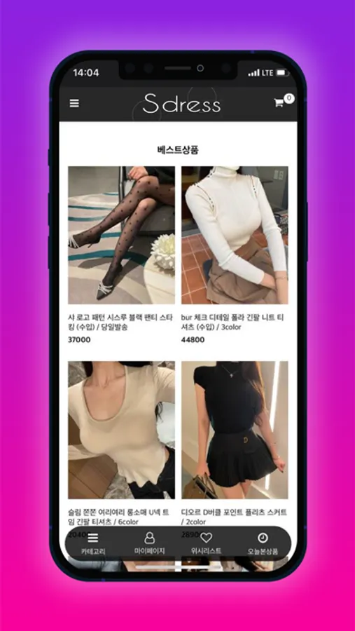 언제 어디서나 편하게 간편하게 이용할수 있는 쇼핑 전용 어플리케이션 에스드레스 입니다.