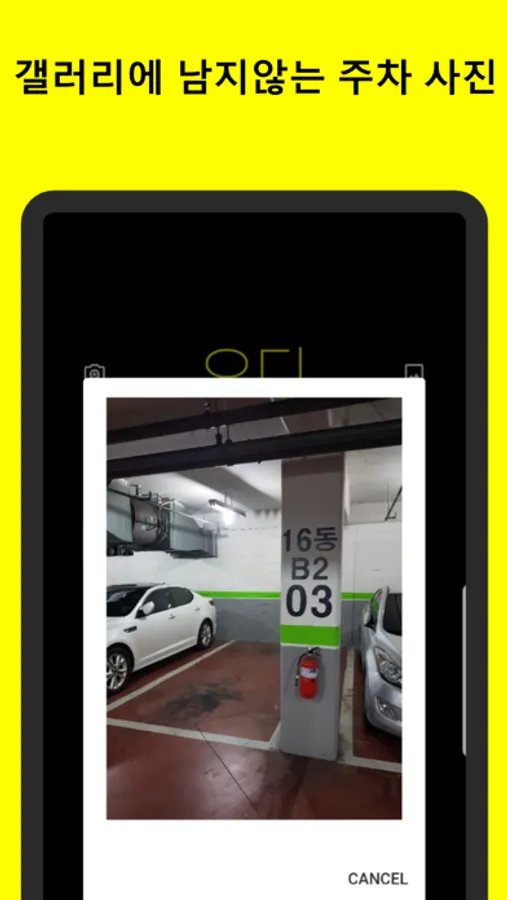 *주차 위치를 사진으로 남길 수 있습니다. 사진은 갤러리에 저장되지 않고 앱에서 볼 수 있습니다.