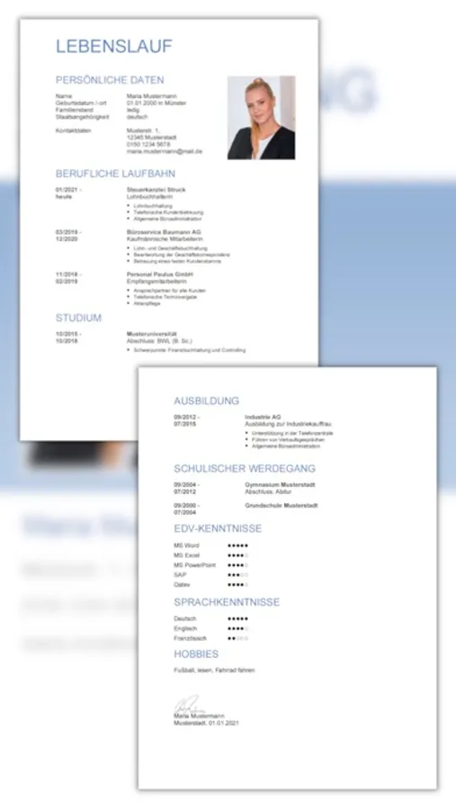• Kein lästiges Layout-Basteln mehr - suche dir eine der 10 Vorlagen für deinen Lebenslauf aus