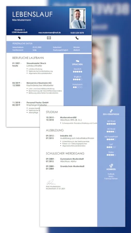 Entwickelt und getestet von Bewerbungsprofis! So einfach war die Erstellung deines Lebenslaufs noch nie. Nutze unsere App jetzt und dein Lebenslauf schreibt sich wie von selbst. Auch ein oder mehrere Anschreiben kannst du jederzeit hinzufügen - oder darauf verzichten, wenn du kein Bewerbungsschreiben mehr benötigst.