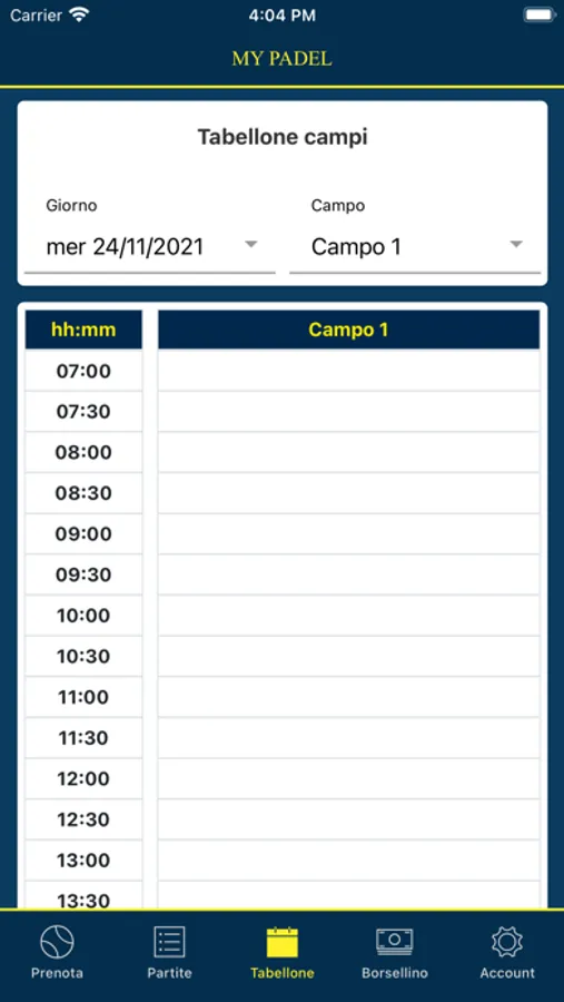 App per la prenotazione dei campi da padel per i Circoli.