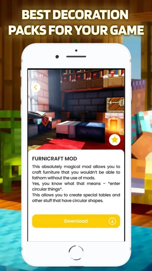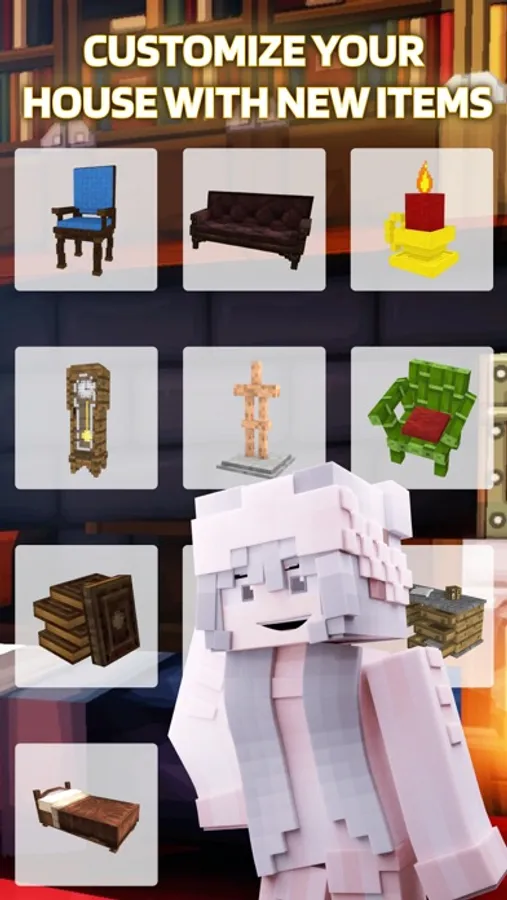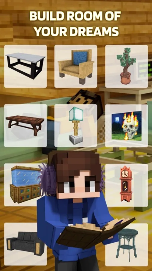 Use the decocraft recipes to create the completeness and conciseness of any interior. Complement your designs with small details that you can find in different collections of furniture and decorations. Realistic objects will be a great addition to houses and mansions, as well as diversify the survival of any player!Also included are maps and skins that can inspire your creativity. Dress up as a builder and start building your dream home! Go explore different buildings like castles to find new details for your interiors. Do not limit your imagination and create realistic and futuristic designs!