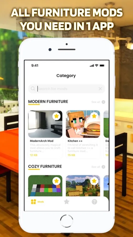 Furniture Mod for Minecraft DISCLAIMER: Ownership, intellectual property rights, and any other interests belong to its publishers or owners. We respect such legal rights and the interests of publishers or owners. This app is not an official Minecraft app and is not affiliated with Mojang AB. This app properly uses assets and brands as recommended on the Mojang Studios Account